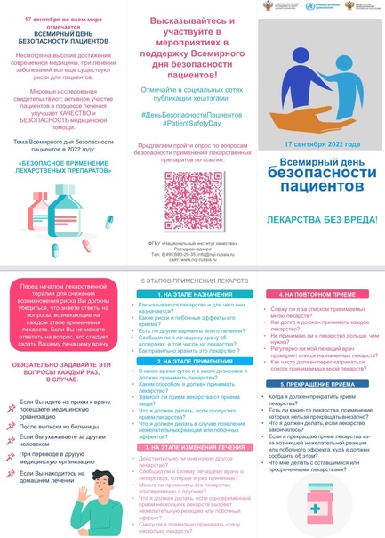 Методические материалы для подготовки и проведения Всемирного дня безопасности пациентов: