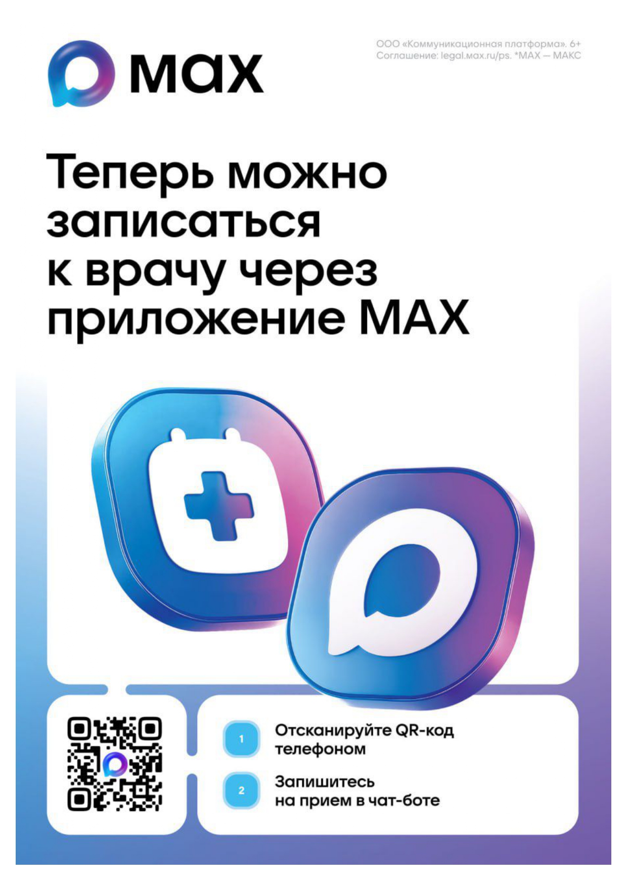Напоминаем, что записаться на приём к врачу можно онлайн — через чат-бот в мессенджере MAX. Это удобно и не требует посещения регистратуры.